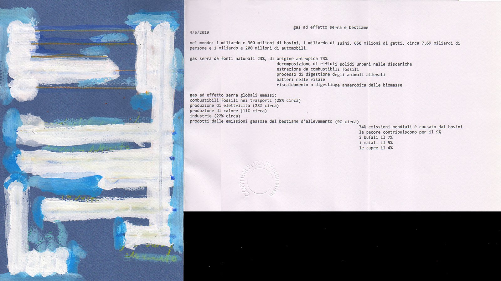 An interesting topic in a historical period facing the threat of a natural disaster is memory retention. For years, I’ve been practicing alienation from the things I own: memory “pressure” is a limit, and such a practice helps me focus on creativity and thought. Clearly, I am not indifferent to scientific progress, but I don’t want to be guided solely by technological constructs. I find it interesting to collect data and then force its interpretation with an artistic approach.