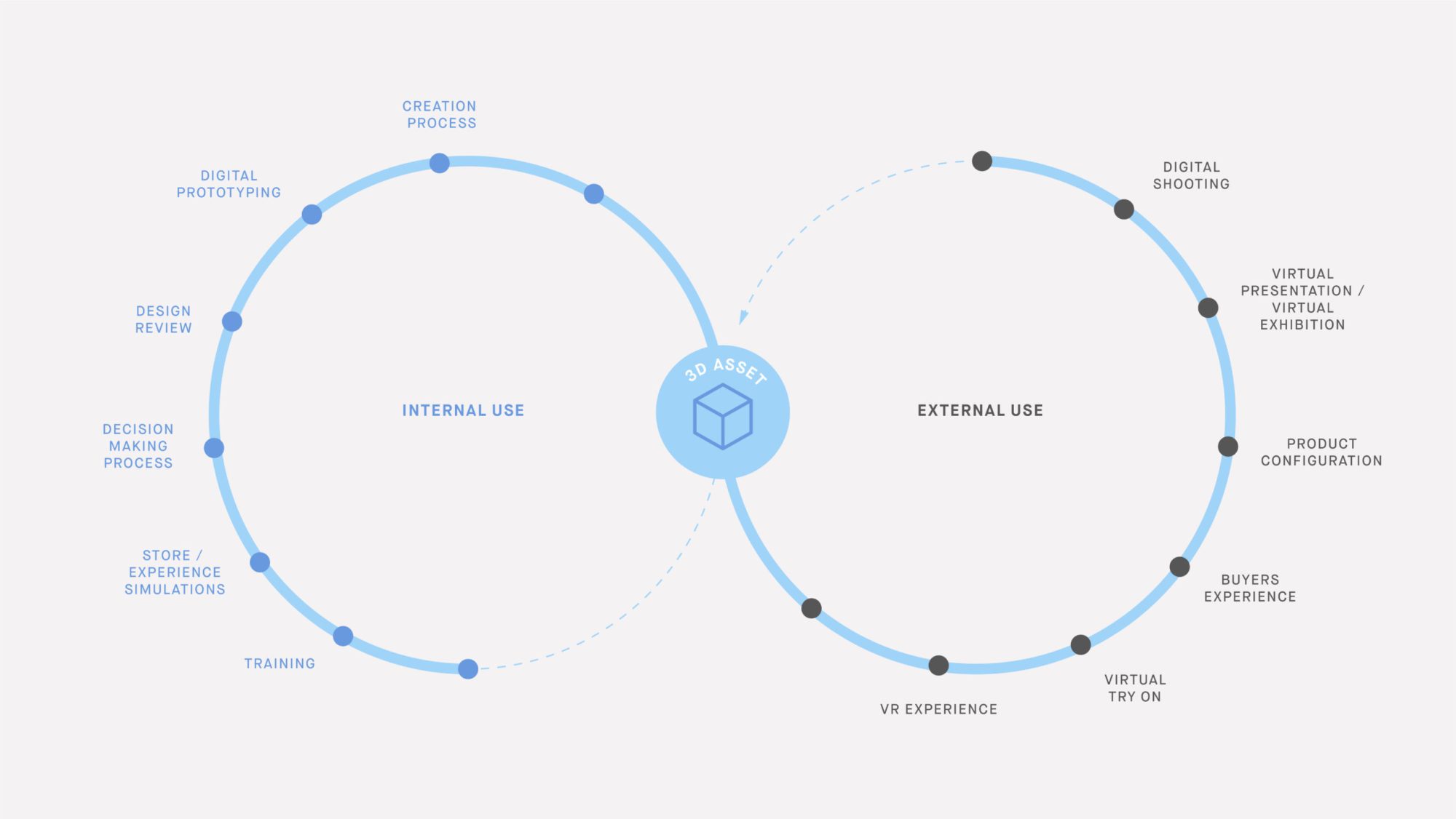 The same goes for companies that perhaps deal with multiple SKUs, whose digital versions can be shown to buyers and clients much more easily — no need for additional shootings. The value generated by digitization and dematerialization changes in accordance with numerous factors, each to be examined individually and per company.