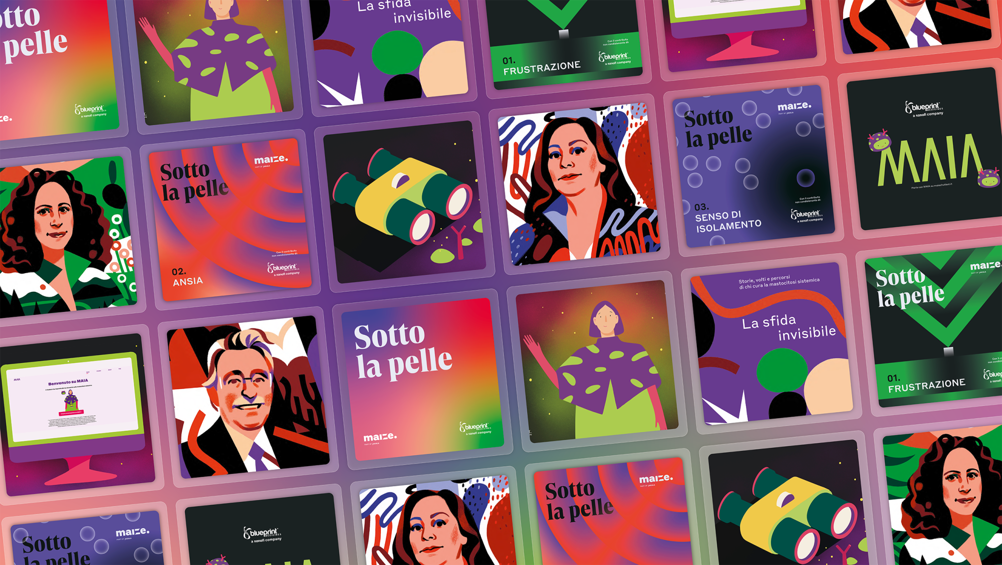 We designed a multichannel ecosystem based on three pillars: Emotions, People, and Knowledge. The project integrates the MAIA chatbot (based on RAG technology) to support specialists, the "Sotto la Pelle" podcast dedicated to the psychological sphere, and "La Sfida Invisibile" magazine, which narrates the human dimension of doctors through original stories and illustrations.